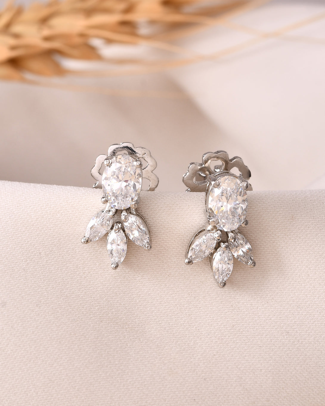 The Blooming Elegance Drop Studs are a delicate fusion of nature and luxury. Featuring an oval-cut CZ stone at