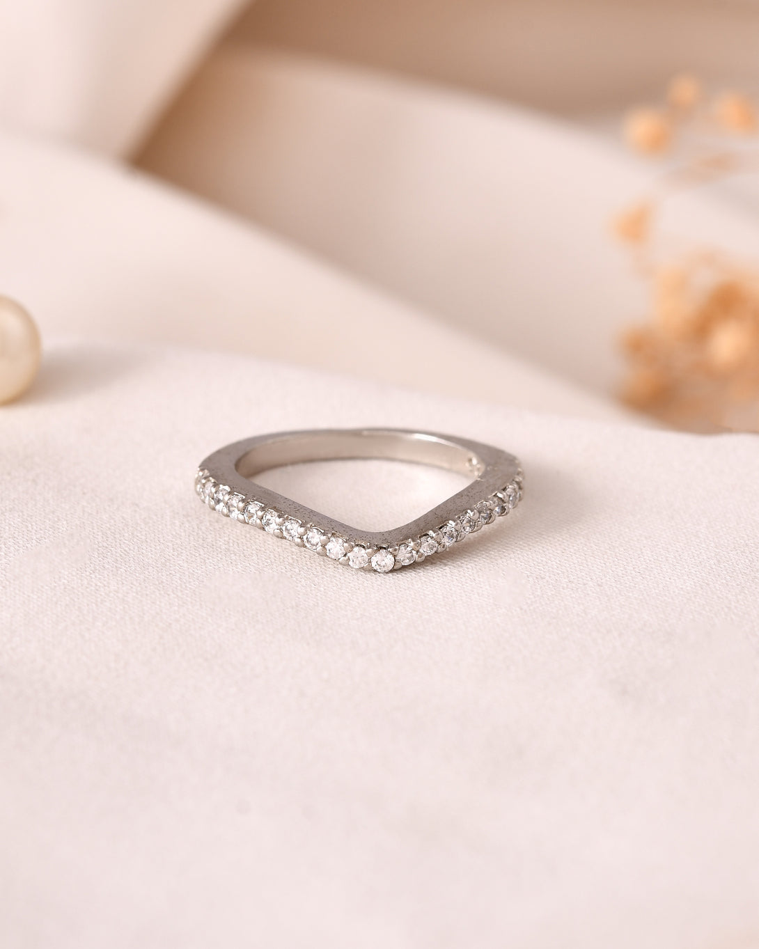 The Eterna V-Shape Band Ring is a modern twist on classic elegance. Designed with a sleek V-shaped