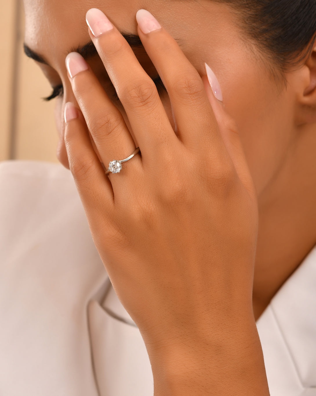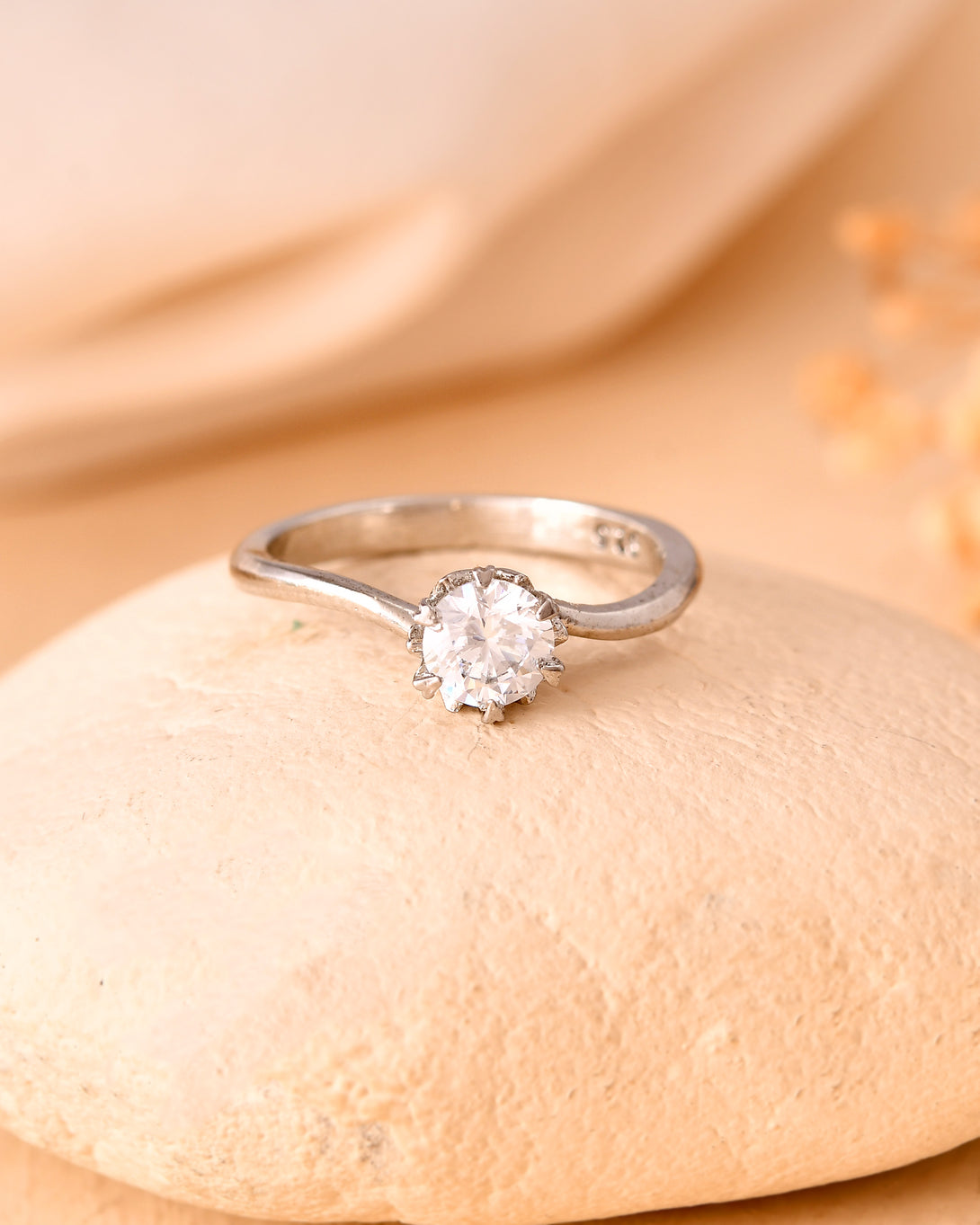 CZ stone in a secure six-prong setting, this ring captures light beautifully, radiating unmatched sparkle. Crafted in 925 Sterling Silver with a sleek band, it’s the perfect choice for engagements, promises, or simply celebrating your