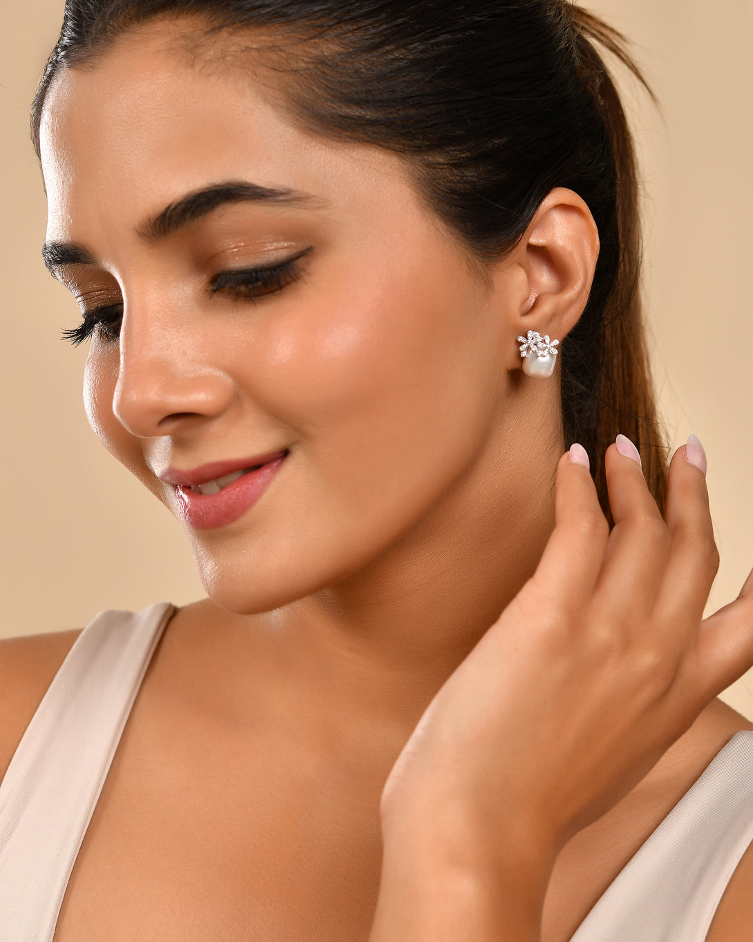 The Floral Frost Pearl Earrings are an elegant blend of nature-inspired beauty and classic charm.