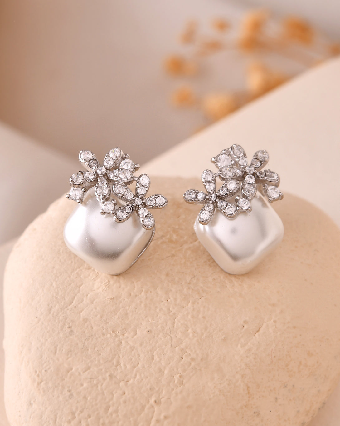 Featuring lustrous pearls adorned with delicate floral clusters of cubic zirconia, these earrings are