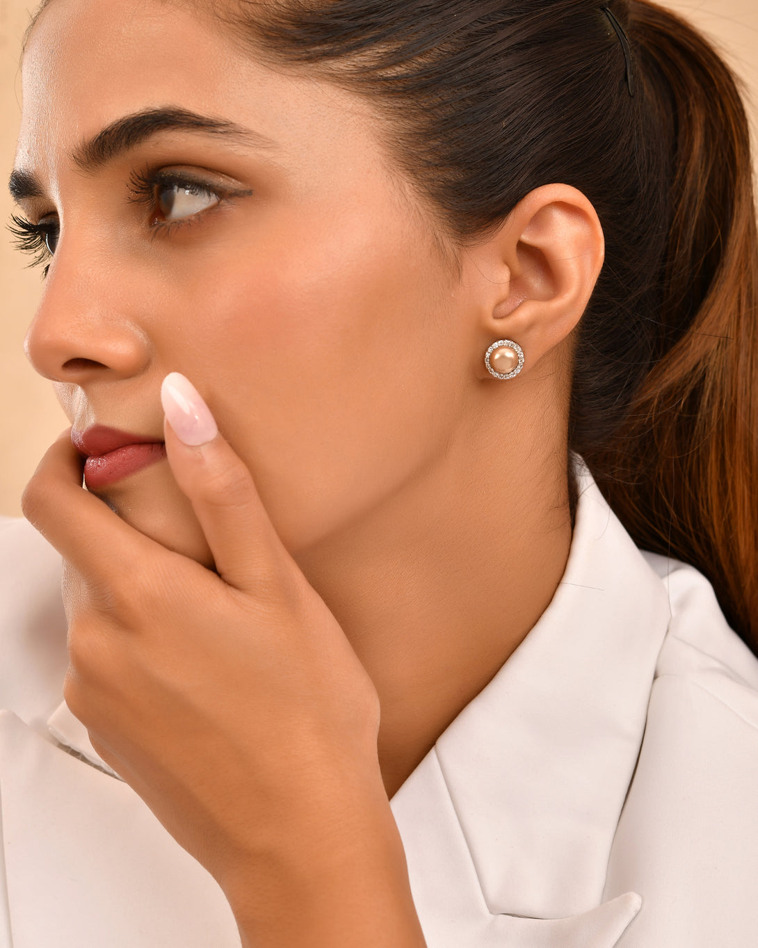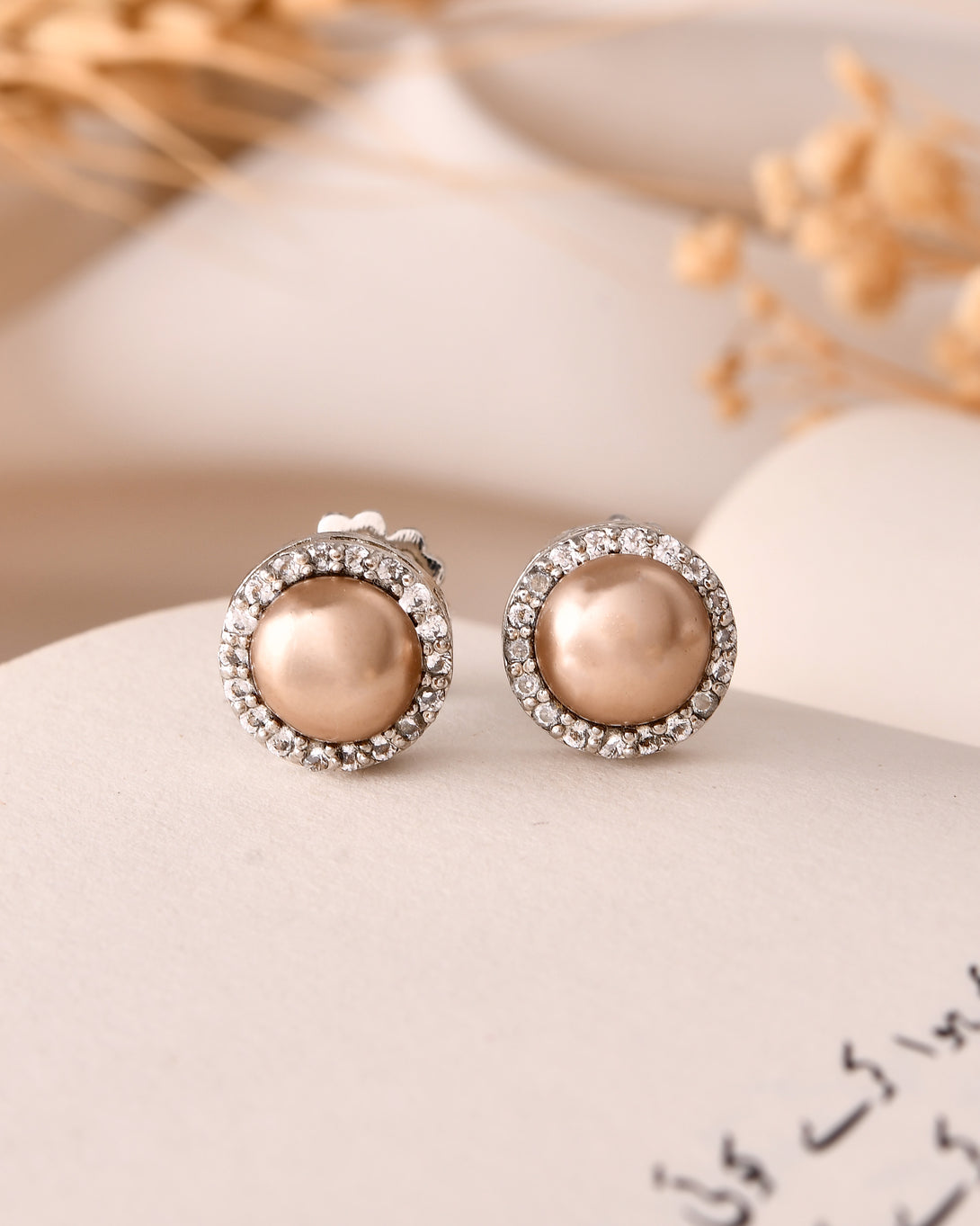 The Golden Glow Pearl Studs exude classic charm with a modern twist. Featuring lustrous golden-hued pearls