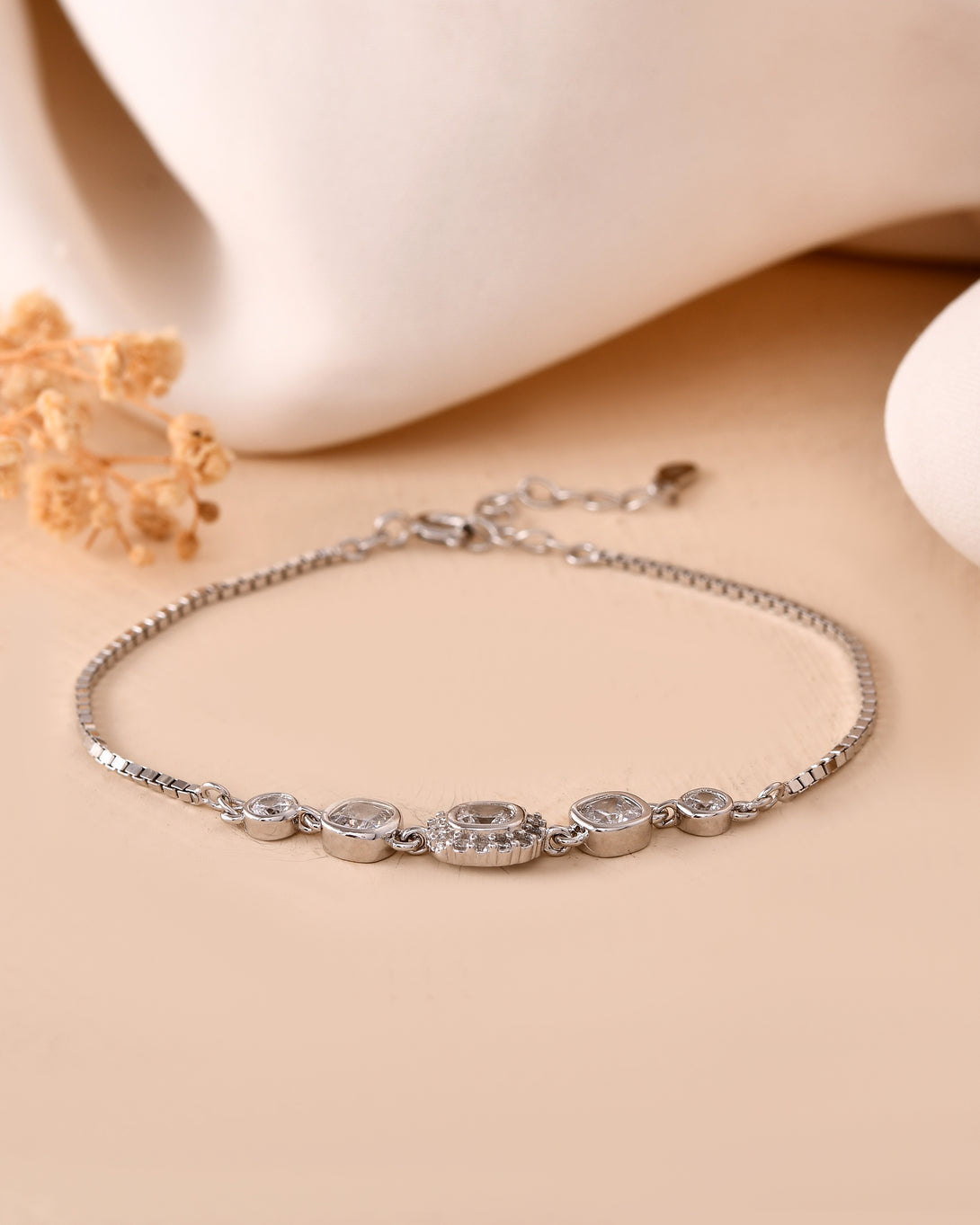 rhodium plating, this bracelet adds a graceful sparkle to both everyday wear and special occasions.