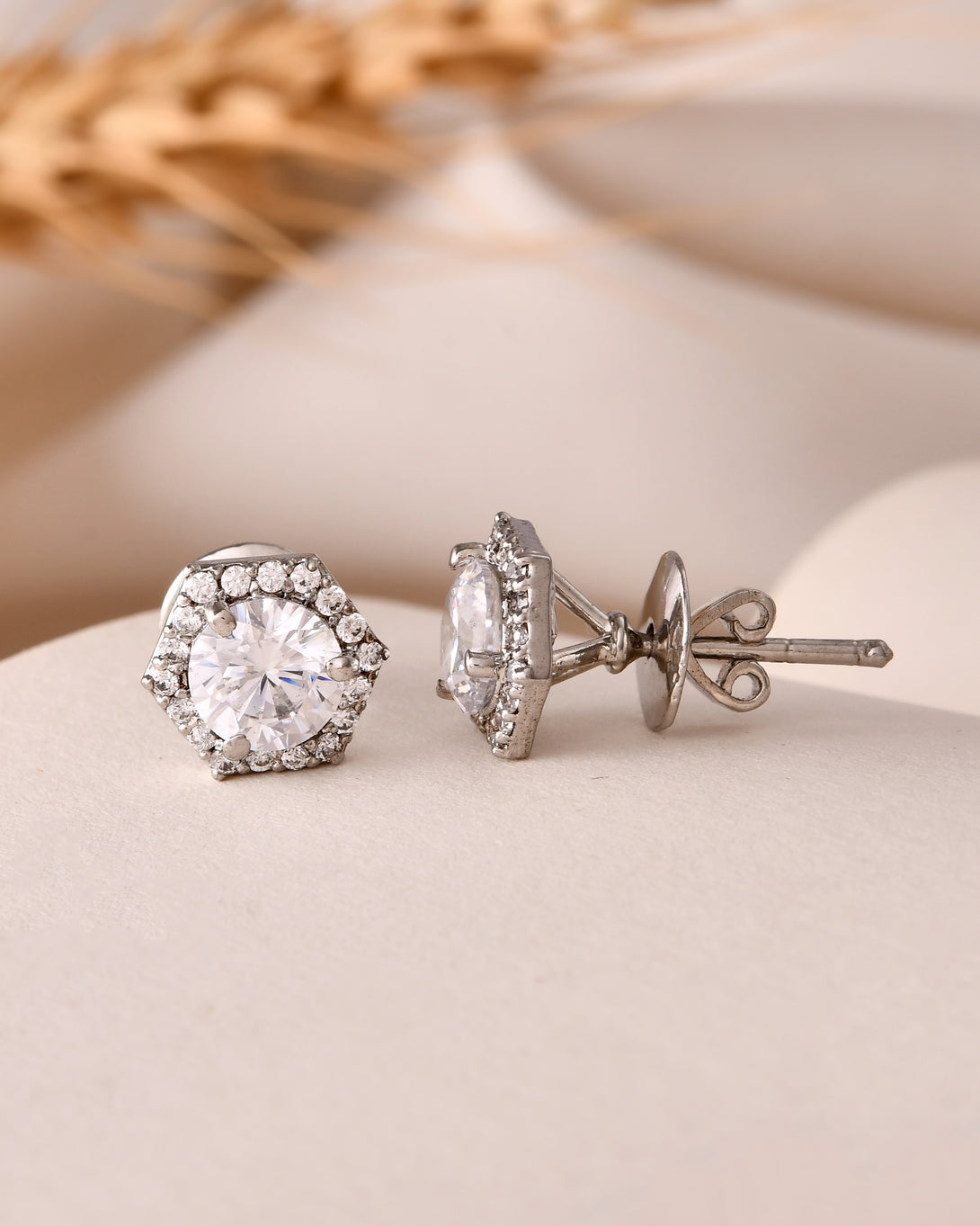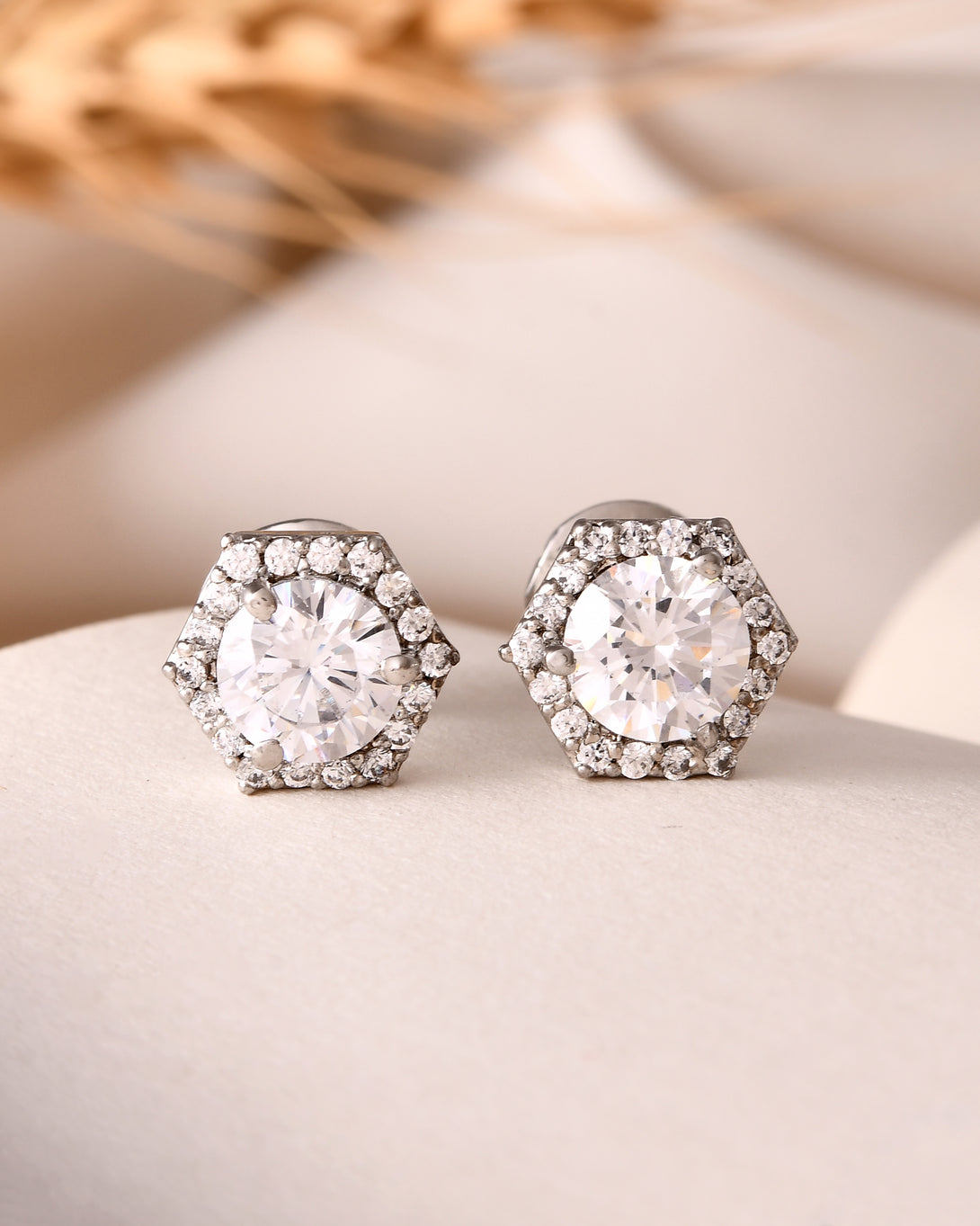 The Hexa Glow Stud Earrings redefine classic sparkle with a modern twist. Featuring a brilliant round-cut CZ