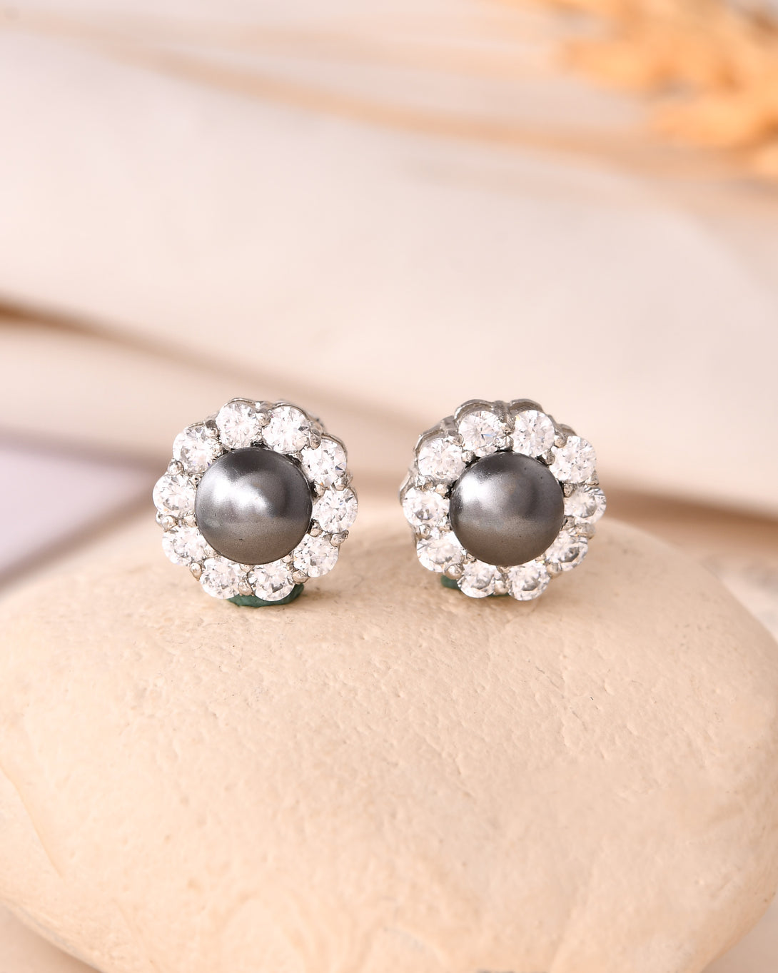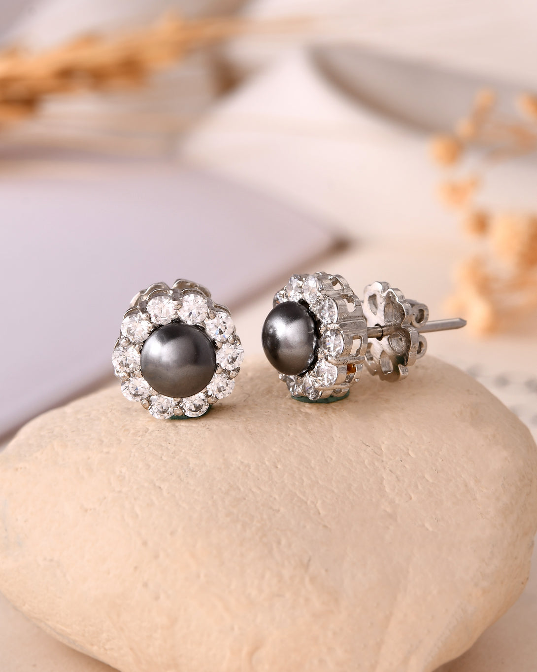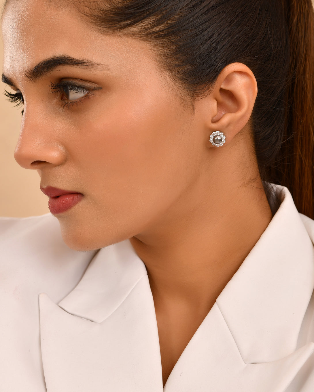 The Midnight Pearl Halo Studs embody mysterious elegance and timeless charm. Featuring lustrous black pearls