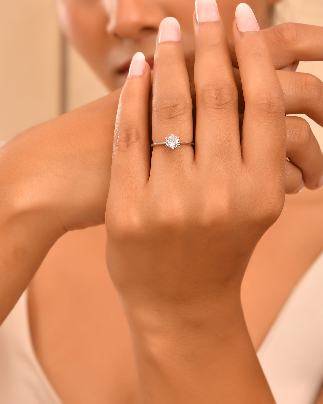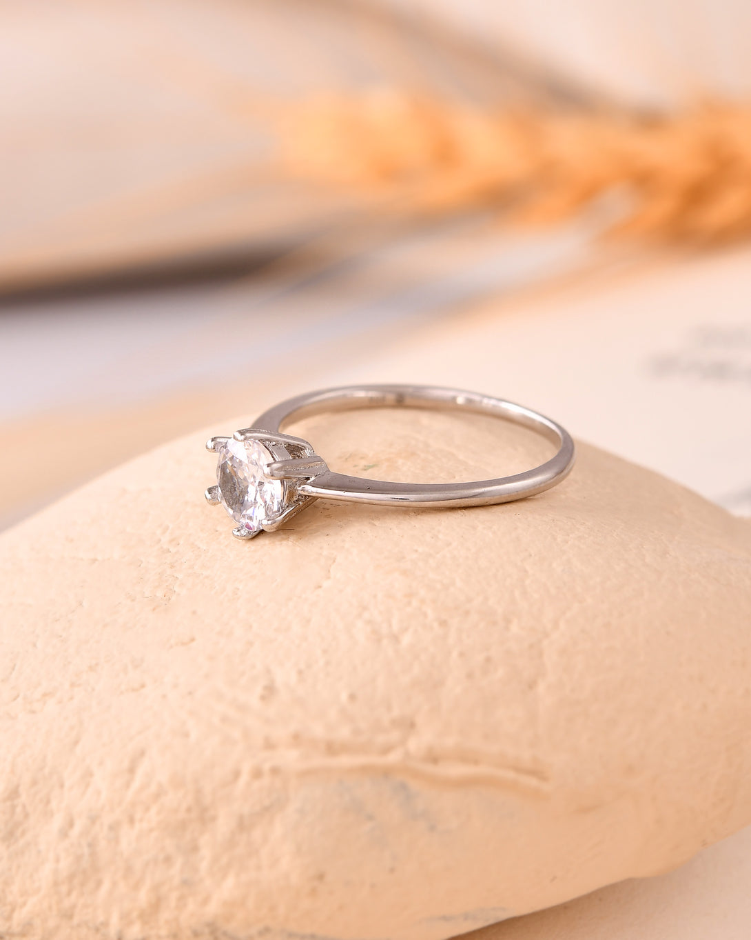 Minimal Luxe Classic Solitaire Ring:- A timeless solitaire ring crafted in sterling silver with a brilliant round-cut CZ
