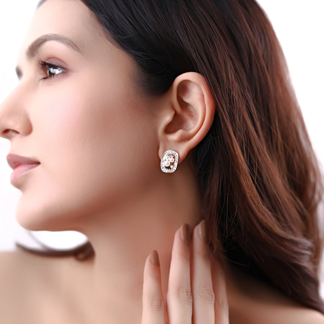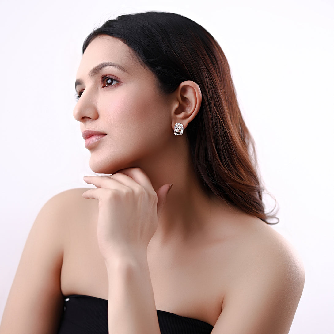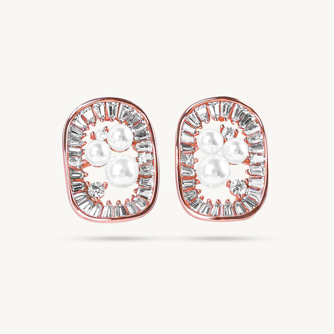 Rose Gold Pearl Halo Earrings